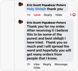 Shilajit is a powerful resin from high altitude Himalayan mountains. We partner with the local Himalayan community to harvest, filter, and sun-dry Holy Shilajit. The final product is then shipped to the USA for thorough lab testing to ensure that the shilajit you're getting is the highest-quality shilajit currently offered to the public. In fact, Arbor Labs in California recently tested Holy Shilajit for antioxidant levels and the results were astonishing: one serving contains 12x more antioxidants than blueberrries and 32x more than kale.